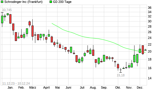 Mit dem Anstieg auf 20,69 EUR hat die Schrodinger-Aktie am 09.12.2024 die 200-Tage-Linie nach oben gekreuzt.