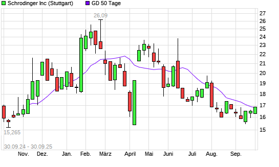 Mit dem Anstieg auf 17,21 EUR hat die Schrodinger-Aktie am 29.09.2025 die 50-Tage-Linie nach oben gekreuzt.