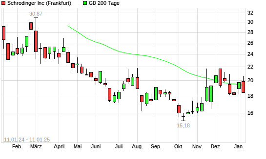 Mit dem Rücksetzer auf 18,44 EUR hat die Schrodinger-Aktie am 10.01.2025 die 200-Tage-Linie nach unten gekreuzt.