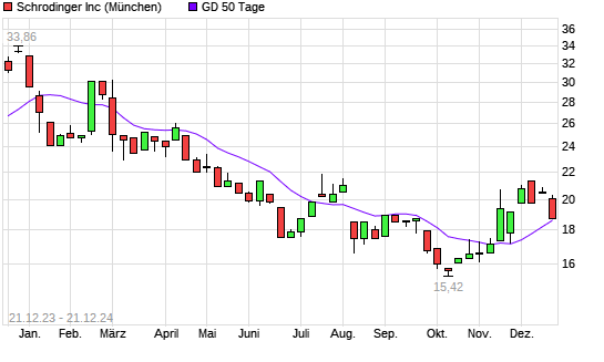 Mit dem Rücksetzer auf 18,31 EUR hat die Schrodinger-Aktie am 20.12.2024 die 50-Tage-Linie nach unten gekreuzt.