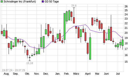 Mit dem Rücksetzer auf 18,66 EUR hat die Schrodinger-Aktie am 18.07.2025 die 50-Tage-Linie nach unten gekreuzt.