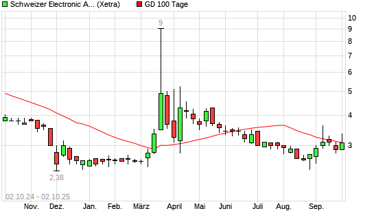 Mit dem Anstieg auf 3,02 EUR hat die Schweizer Electronic-Aktie am 01.10.2025 die 100-Tage-Linie nach oben gekreuzt.