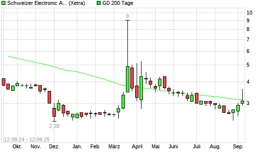 Mit dem Rücksetzer auf 2,98 EUR hat die Schweizer Electronic-Aktie am 11.09.2025 die 200-Tage-Linie nach unten gekreuzt.