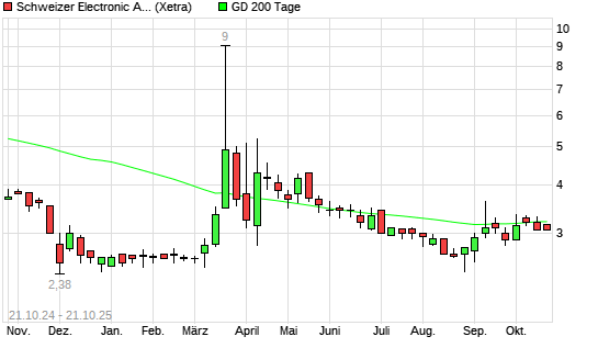 Mit dem Rücksetzer auf 2,96 EUR hat die Schweizer Electronic-Aktie am 20.10.2025 die 200-Tage-Linie nach unten gekreuzt.