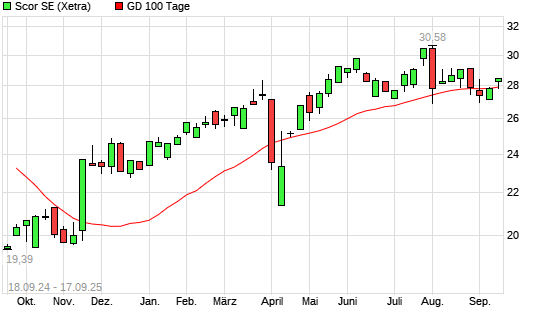 Mit dem Anstieg auf 28,38 EUR hat die Scor-Aktie am 17.09.2025 die 100-Tage-Linie nach oben gekreuzt.