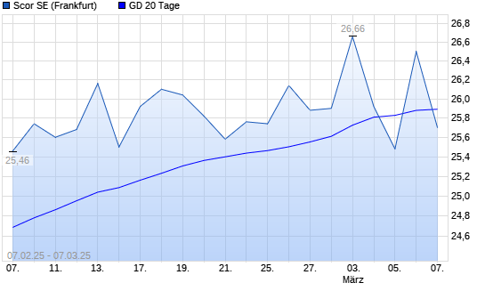 Mit dem Anstieg auf 26,50 EUR hat die Scor-Aktie am 06.03.2025 die 20-Tage-Linie nach oben gekreuzt.
