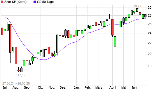 Mit dem Rücksetzer auf 27,52 EUR hat die Scor-Aktie am 26.06.2025 die 50-Tage-Linie nach unten gekreuzt.