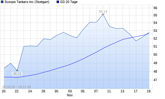 Mit dem Rücksetzer auf 52,44 EUR hat die Scorpio Tankers-Aktie am 18.11.2025 die 20-Tage-Linie nach unten gekreuzt.
