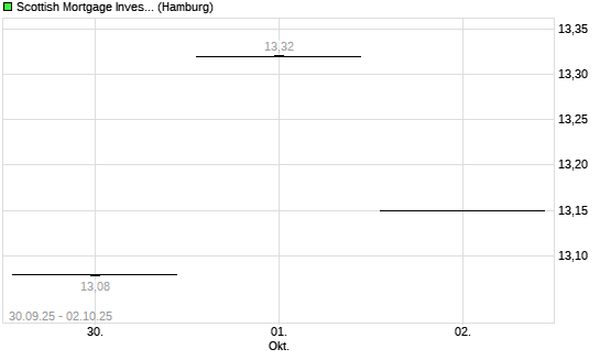 Mit dem Anstieg auf 13,23 EUR hat die Scottish Mortgage Investment-Aktie (ISIN GB00BLDYK618) am 01.10.2025 ein neues 6-Monats-Hoch erreicht und damit den Kurs vom 22.09.2025 eingestellt.