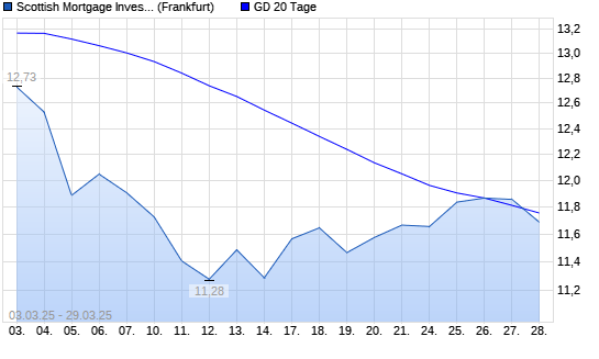 Mit dem Rücksetzer auf 11,69 EUR hat die Scottish Mortgage Investment-Aktie am 28.03.2025 die 20-Tage-Linie nach unten gekreuzt.