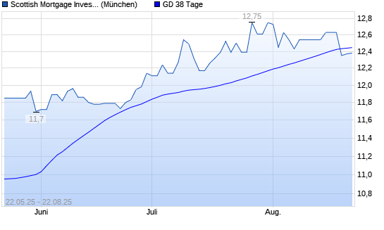 Mit dem Rücksetzer auf 12,37 EUR hat die Scottish Mortgage Investment-Aktie am 21.08.2025 die 38-Tage-Linie nach unten gekreuzt.