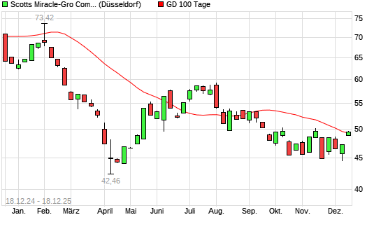 Mit dem Anstieg auf 49,60 EUR hat die Scotts Miracle Gro-Aktie am 17.12.2025 die 100-Tage-Linie nach oben gekreuzt.