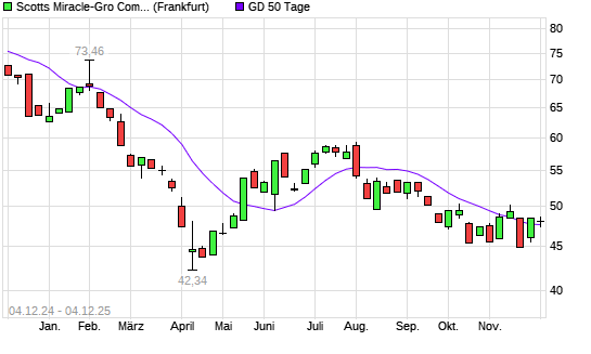 Mit dem Rücksetzer auf 47,36 EUR hat die Scotts Miracle Gro-Aktie am 03.12.2025 die 50-Tage-Linie nach unten gekreuzt.