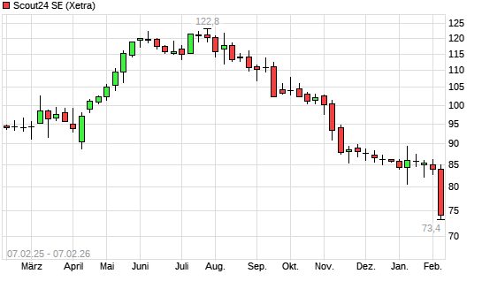 Mit dem Rücksetzer auf 74,05 EUR hat die Scout24-Aktie (ISIN DE000A12DM80) am 06.02.2026 ein neues 12-Monats-Tief erreicht und damit den Kurs vom 04.02.2026 eingestellt.