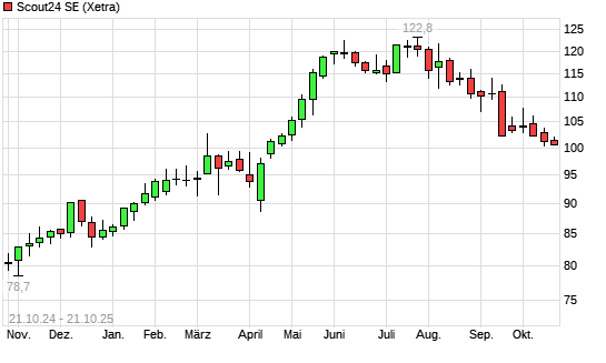 Mit dem Rücksetzer auf 99,95 EUR hat die Scout24-Aktie (ISIN DE000A12DM80) am 20.10.2025 ein neues 6-Monats-Tief erreicht und damit den Kurs vom 22.04.2025 eingestellt.