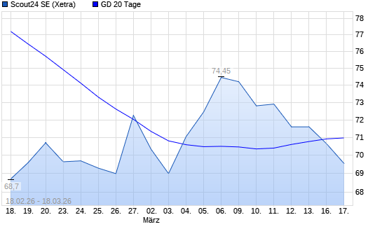 Mit dem Rücksetzer auf 69,95 EUR hat die Scout24-Aktie am 17.03.2026 die 20-Tage-Linie nach unten gekreuzt.
