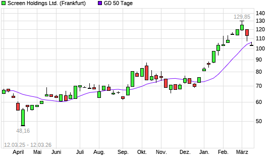 Mit dem Anstieg auf 106,30 EUR hat die Screen Holdings-Aktie am 11.03.2026 die 50-Tage-Linie nach oben gekreuzt.