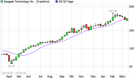 Mit dem Anstieg auf 318,65 EUR hat die Seagate Technology-Aktie am 09.03.2026 die 50-Tage-Linie nach oben gekreuzt.