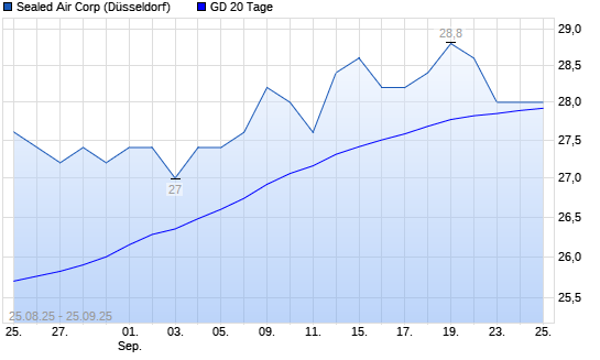 Mit dem Rücksetzer auf 28,00 EUR hat die Sealed Air-Aktie am 24.09.2025 die 20-Tage-Linie nach unten gekreuzt.