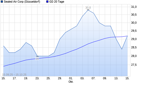 Mit dem Rücksetzer auf 28,80 EUR hat die Sealed Air-Aktie am 14.10.2025 die 20-Tage-Linie nach unten gekreuzt.