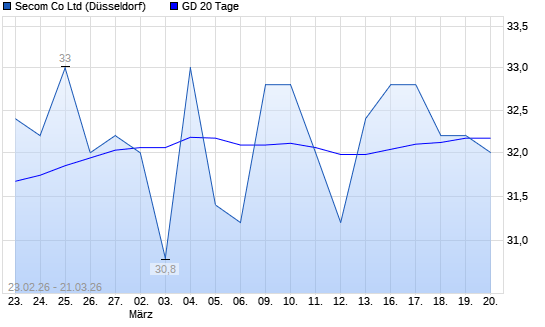 Mit dem Anstieg auf 32,40 EUR hat die Secom-Aktie am 20.03.2026 die 20-Tage-Linie nach oben gekreuzt.