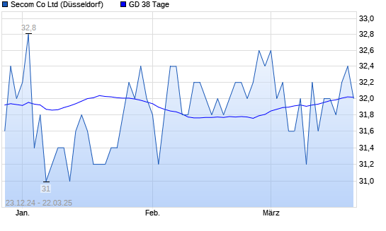Mit dem Rücksetzer auf 32,20 EUR hat die Secom-Aktie am 21.03.2025 die 38-Tage-Linie nach unten gekreuzt.