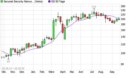 Mit dem Anstieg auf 205,00 EUR hat die Secunet Security Networks-Aktie am 24.09.2025 die 50-Tage-Linie nach oben gekreuzt.