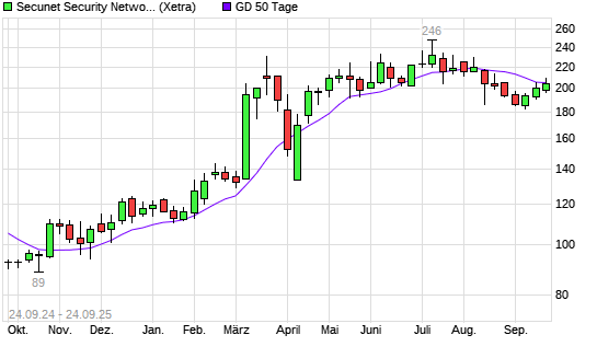 Mit dem Rücksetzer auf 204,00 EUR hat die Secunet Security Networks-Aktie am 23.09.2025 die 50-Tage-Linie nach unten gekreuzt.