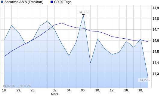 Mit dem Anstieg auf 14,61 EUR hat die Securitas B-Aktie am 18.03.2026 die 20-Tage-Linie nach oben gekreuzt.