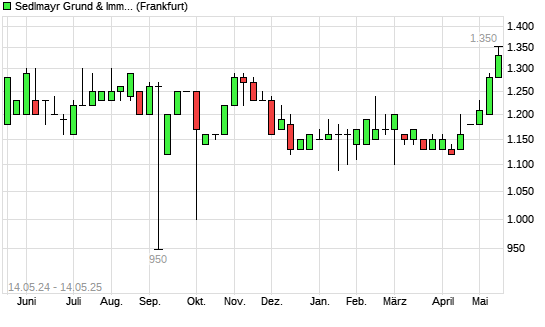 Mit dem Anstieg auf 1.340,00 EUR hat die Sedlmayr Grund und Immobilien-Aktie (ISIN DE0007224008) am 13.05.2025 ein neues 12-Monats-Hoch erreicht und damit den Kurs vom 12.05.2025 eingestellt.