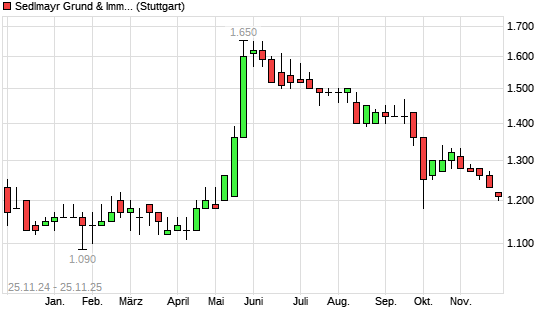 Mit dem Rücksetzer auf 1.220,00 EUR hat die Sedlmayr Grund und Immobilien-Aktie (ISIN DE0007224008) am 24.11.2025 ein neues 6-Monats-Tief erreicht und damit den Kurs vom 29.09.2025 eingestellt.