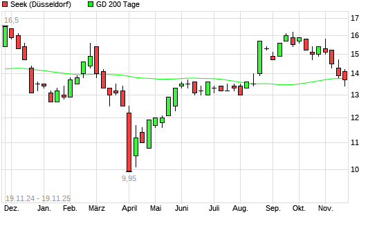Mit dem Rücksetzer auf 13,60 EUR hat die Seek-Aktie am 18.11.2025 die 200-Tage-Linie nach unten gekreuzt.