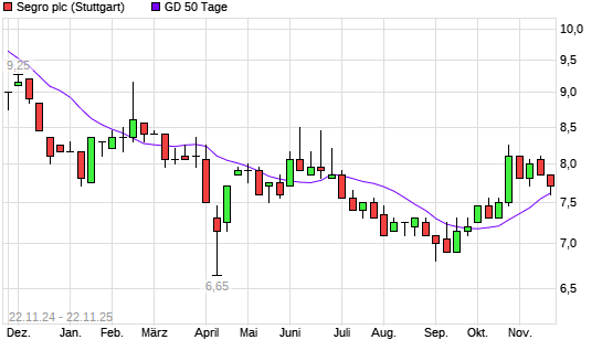 Mit dem Rücksetzer auf 7,70 EUR hat die Segro-Aktie am 21.11.2025 die 50-Tage-Linie nach unten gekreuzt.