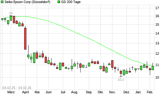 Mit dem Anstieg auf 11,00 EUR hat die Seiko Epson-Aktie am 03.02.2026 die 200-Tage-Linie nach oben gekreuzt.