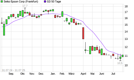 Mit dem Anstieg auf 11,10 EUR hat die Seiko Epson-Aktie am 30.07.2025 die 50-Tage-Linie nach oben gekreuzt.