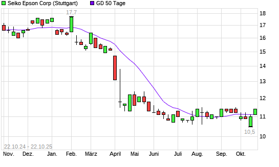 Mit dem Anstieg auf 11,10 EUR hat die Seiko Epson-Aktie am 21.10.2025 die 50-Tage-Linie nach oben gekreuzt.