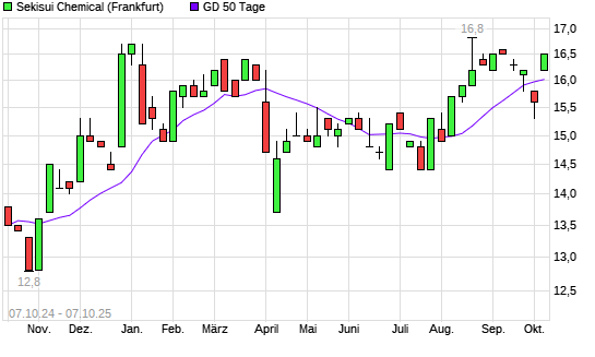 Mit dem Anstieg auf 16,20 EUR hat die Sekisui Chemical-Aktie am 06.10.2025 die 50-Tage-Linie nach oben gekreuzt.
