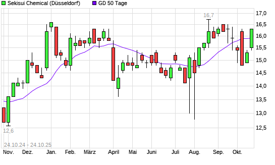 Mit dem Anstieg auf 16,10 EUR hat die Sekisui Chemical-Aktie am 23.10.2025 die 50-Tage-Linie nach oben gekreuzt.
