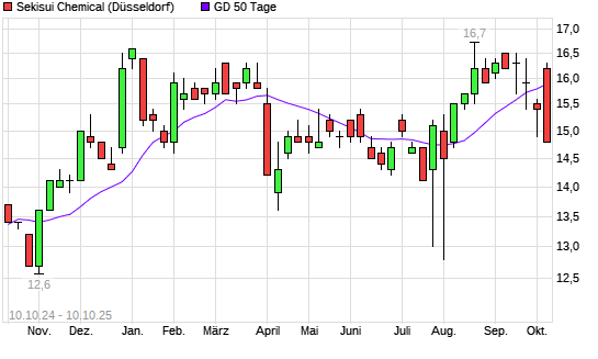 Mit dem Rücksetzer auf 15,90 EUR hat die Sekisui Chemical-Aktie am 09.10.2025 die 50-Tage-Linie nach unten gekreuzt.