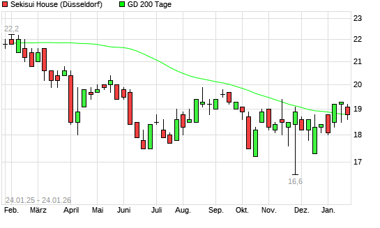 Mit dem Rücksetzer auf 18,90 EUR hat die Sekisui House-Aktie am 23.01.2026 die 200-Tage-Linie nach unten gekreuzt.