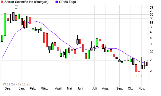 Mit dem Rücksetzer auf 23,20 EUR hat die Semler Scientific-Aktie am 12.11.2025 die 50-Tage-Linie nach unten gekreuzt.