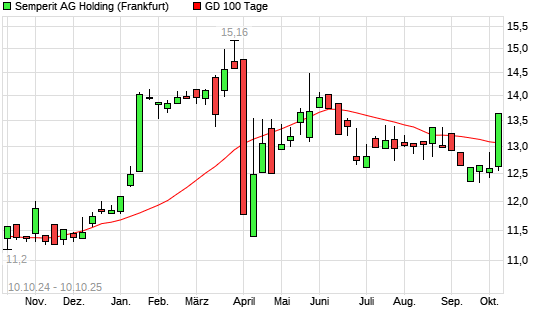 Mit dem Anstieg auf 13,16 EUR hat die Semperit-Aktie am 09.10.2025 die 100-Tage-Linie nach oben gekreuzt.