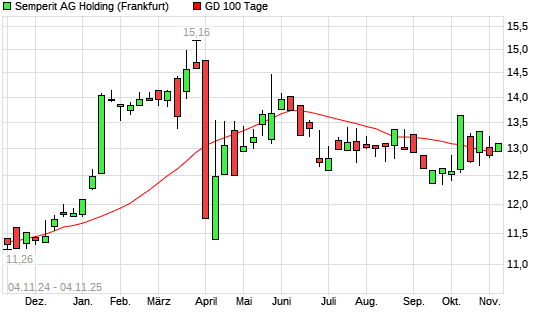 Mit dem Anstieg auf 13,10 EUR hat die Semperit-Aktie am 03.11.2025 die 100-Tage-Linie nach oben gekreuzt.