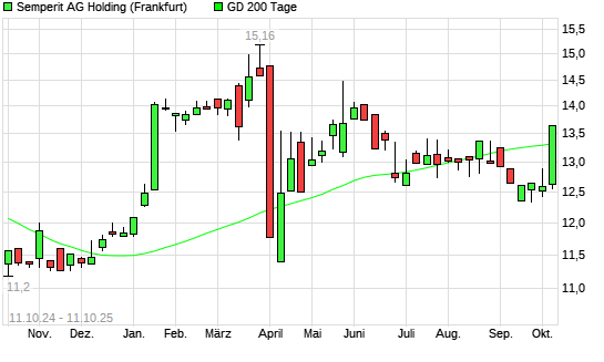Mit dem Anstieg auf 13,64 EUR hat die Semperit-Aktie am 10.10.2025 die 200-Tage-Linie nach oben gekreuzt.