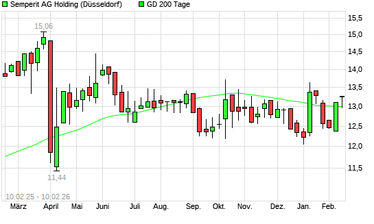 Mit dem Anstieg auf 13,16 EUR hat die Semperit-Aktie am 09.02.2026 die 200-Tage-Linie nach oben gekreuzt.
