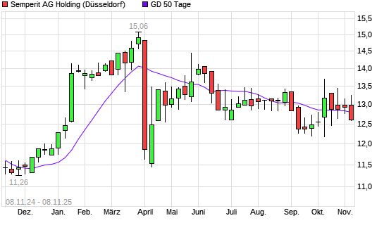 Mit dem Rücksetzer auf 12,74 EUR hat die Semperit-Aktie am 07.11.2025 die 50-Tage-Linie nach unten gekreuzt.