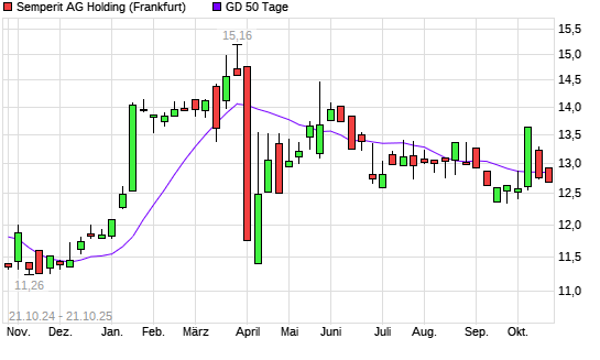 Mit dem Anstieg auf 12,92 EUR hat die Semperit-Aktie am 20.10.2025 die 50-Tage-Linie nach oben gekreuzt.Die Semperit-Aktie befindet sich seit dem 13.10.2025 im langfristigen Abwärtstrend und ...weiterlesen