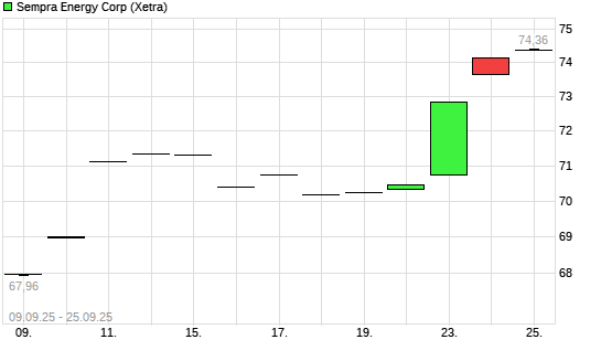 Mit dem Anstieg auf 72,64 EUR hat die Sempra Energy-Aktie (ISIN US8168511090) am 24.09.2025 ein neues 6-Monats-Hoch erreicht und damit den Kurs vom 05.08.2025 eingestellt.
