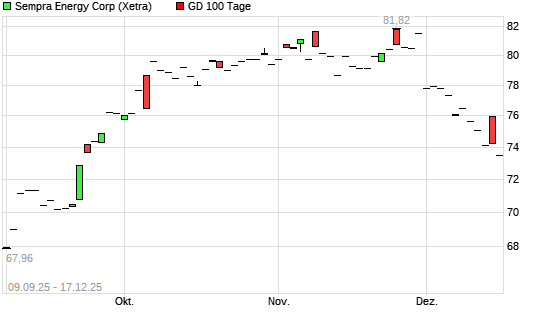 Mit dem Rücksetzer auf 74,62 EUR hat die Sempra Energy-Aktie am 16.12.2025 die 100-Tage-Linie nach unten gekreuzt.