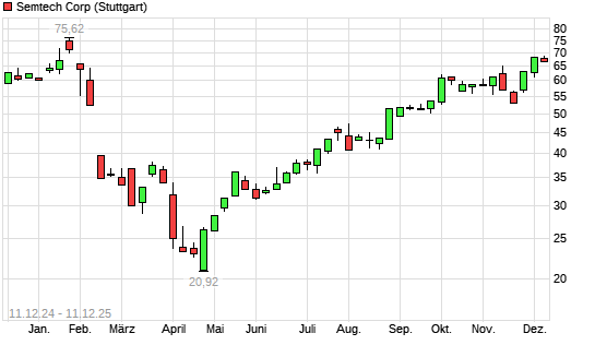Mit dem Anstieg auf 68,70 EUR hat die Semtech-Aktie (ISIN US8168501018) am 10.12.2025 ein neues 6-Monats-Hoch erreicht und damit den Kurs vom 08.12.2025 eingestellt.